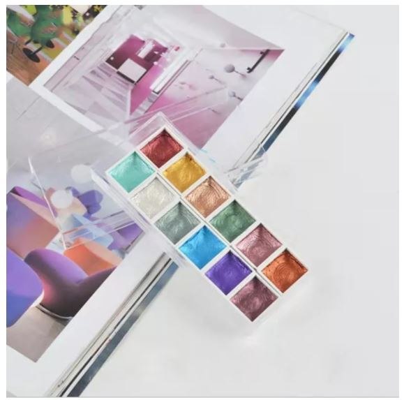 ערכת צבעי מים זוהרים ומיוחדים הכוללת 12 צבעים, המאפשרים ליצור עיצובים וגופנים ייחודיים ומרשימים.
