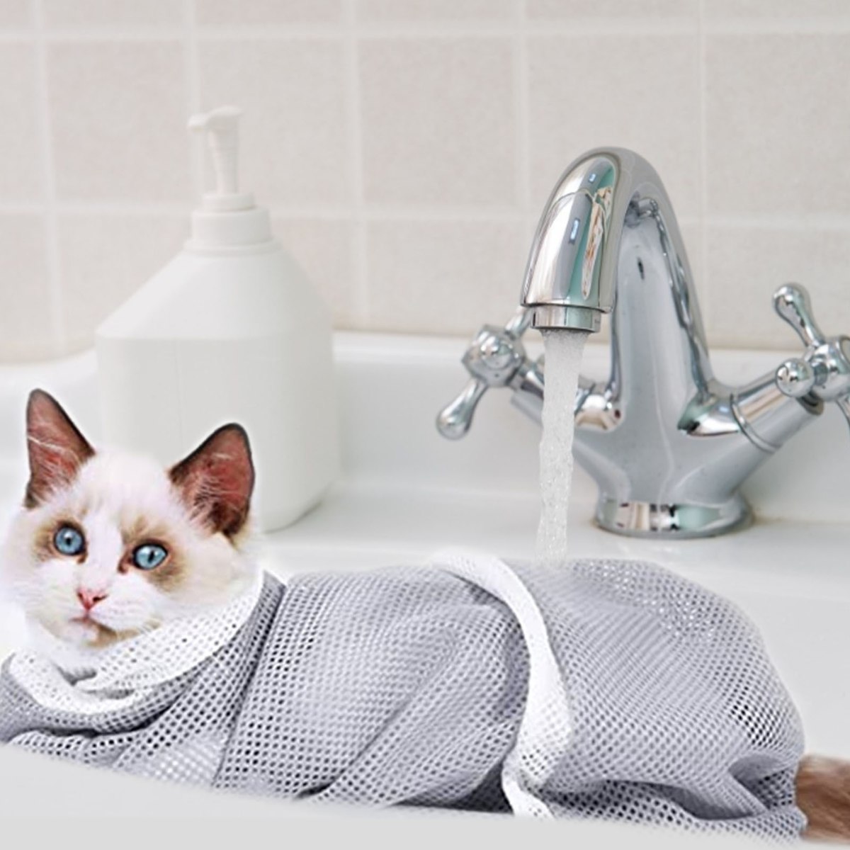 השק ריסון עשוי מבד רשת נושם היאפשר לנו להרגיע את החתול מבלי לפגוע בו בזמן הטיפוח והמקלחת-בד הרשת מאפשר לתכשירי הטיפוח ולמים לחדור דרכו ללא בעיה כלל.