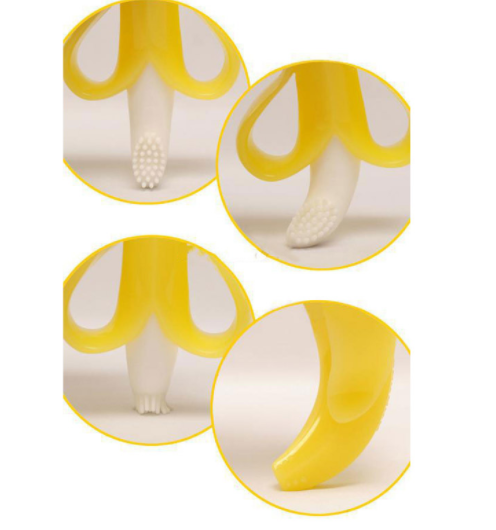 מברשת משולבת עם נשכן בננה עשויה מסיליקון מתאימה לתינוק החל מגיל 3 חודשים והשן הראשונה